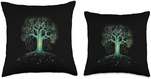 Binary Hacking Coding Software Programming Binary Code Tree Computer Science Technology Coder Throw Pillow, 18x18, Multicolor