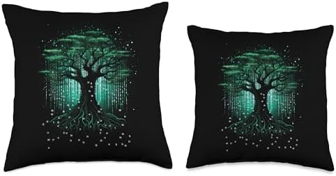 Binary Hacking Coding Software Programming Binary Code Tree Computer Science Technology Coder Throw Pillow, 16x16, Multicolor
