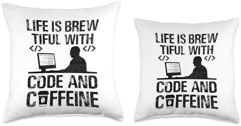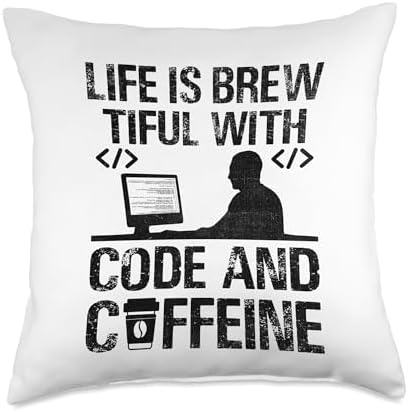 Programming Coffee Caffeine Development Coding Programmer Coder Developer Nerd Coffee Lover Throw Pillow, 18x18, Multicolor