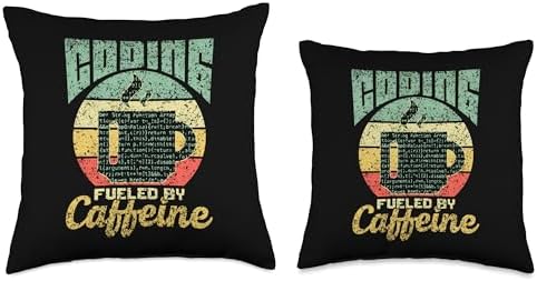 Developer Developing Programming It Software Job Fueled by Caffeine Coder Programmer Coding Throw Pillow, 16x16, Multicolor