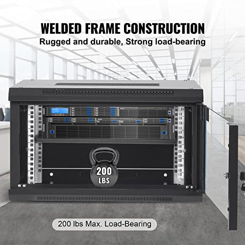 VEVOR 6U Wall Mount Network Server Cabinet, 15.5'' Deep, Server Rack Cabinet Enclosure, 200 lbs Max. Ground-Mounted Load Capacity, with Locking Glass Door Side Panels, for IT Equipment, A/V Devices