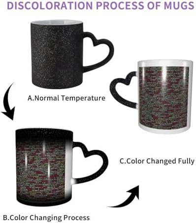 - Heat-Sensitive Material: Crafted With Exceptional Ceramic Material That Exhibits Exciting Heat-Sensitive Color Changing Properties. It Transforms From Black To White Upon Pouring Hot Liquid, Revealing The Printed Image. As The Temperature Drops, It Changes Back To Black, Presenting A Magic-Like Experience.