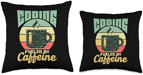 Developer Job Programming It Software Developing Fueled by Caffeine Coder Programmer Coding Throw Pillow, 18x18, Multicolor