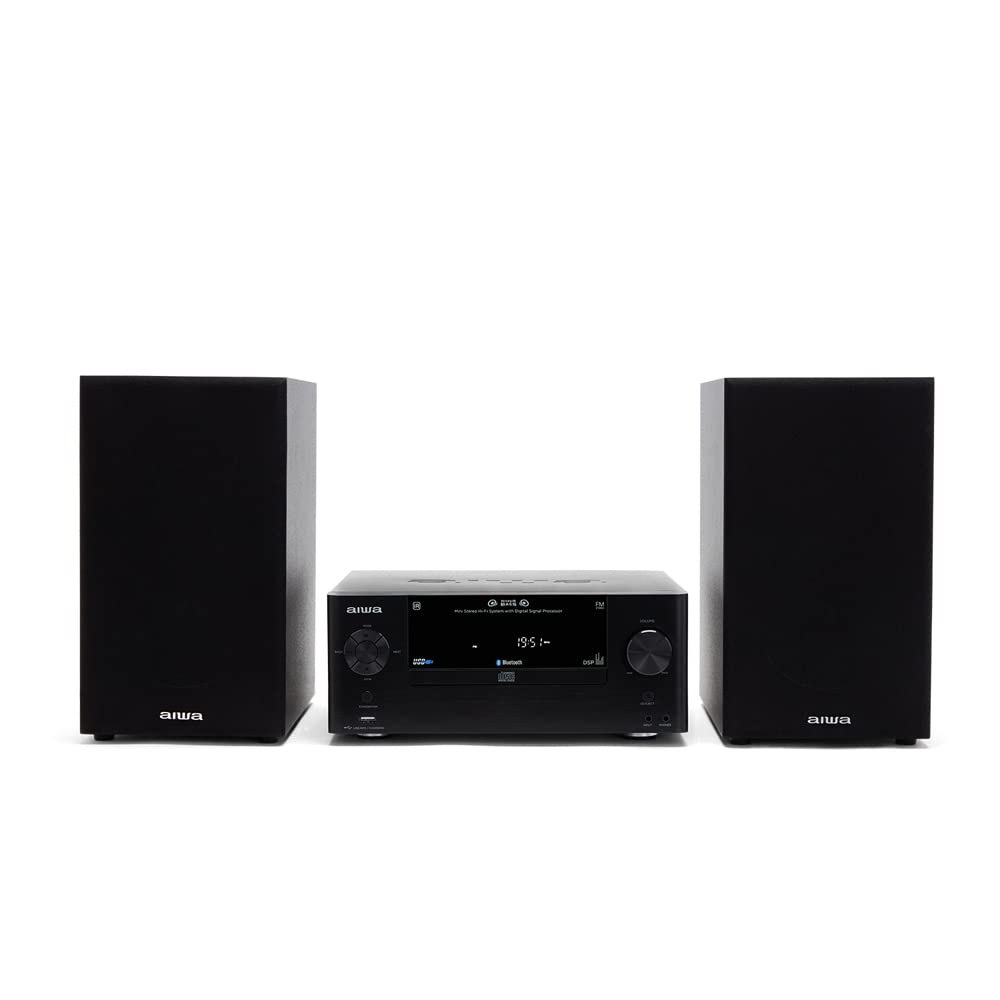 AIWA Exos Home Speaker, Premium 30W RMS Sound System with CD Player, Bluetooth Connectivity, FM Radio, Optical Digital Input, Dual 1” Tweeters + Dual 2” Bass Units, IR Remote Control