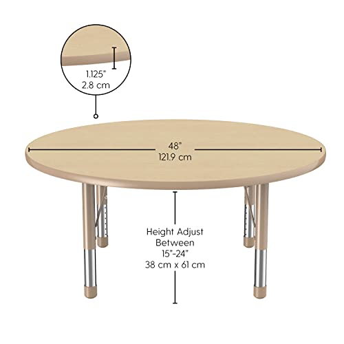 - MULTI-PURPOSE ACTIVITY TABLE: This 48" round table with adjustable legs provides a durable, versatile space to work and play in classrooms, daycares, homes, churches and more. Chunky table legs adjust in 1" increments for table top heights from 15" to 24" to accommodate growing children
