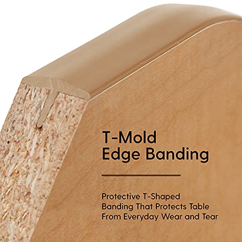 - T-MOLD EDGE: Sturdy plastic edge banding around table top helps protect from everyday wear and tear