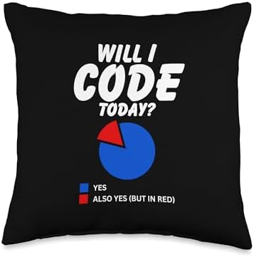 Will I code today? Humorous Binary Computer Coders Funny Design for Coder, Programmer Code Lovers Throw Pillow, 16x16, Multicolor