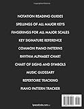 - An easy way to help students focus on exactly WHAT they should be learning and HOW they should go about it, the Piano Practice Planner is a complete resource for piano students and teachers containing 52 weeks of lesson plans and 15 pages of essential reference documents, making it the all-in-one book to more organized, efficient and satisfying piano practice. Keep students focused and on task with each weekly single page Practice Plan, which gives ample space for assigning specific goals for scale and arpeggio warm-ups, reading new music, repeating specific sections of a piece, and theory related studies. Each Piano Practice Plan also includes space for referencing audio and video resources on the web, which help make practicing more engaging and productive for students. The Piano Practice Planner also includes a “star” chart for tracking student progress in learning and memorizing musical patterns at the piano such as triads, inversions and scales in all keys, while the Repertoire Tracking page gives students a place to rack up repetitions of pieces they have learned in the past. The reference documents in the Piano Practice Planner represent an expansive trove of useful musical knowledge all students of the piano should learn, beginning with a thoughtful guide to the Elements of Music. Other pages include guides for reading musical notation, intervals and inversions; an easy to read table of the rhythm alphabet, and a key signature guide displaying relative and parallel keys, all in an easy-to read format. This volume also includes a clear, concise chart with the spellings of all 15 keys and the piano fingerings for two octave scales in every key, as well as a page displaying the most common musical patterns played by piano students for centuries. Features a 100 word glossary of important musical terms and a handy table of signs and symbols. The most complete piano practice planning resource, this book covers it all!