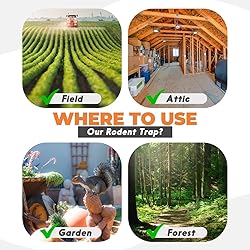 Instant & Humane: Equipped with an ultra-strong spring, our squirrel trap delivers a swift and humane end. No suffering, no mess, no fuss! Just quick and compassionate pest control. Eco-Friendly Reusability: Wash, dry, and reuse. Our durable trap is designed for easy cleaning and repeated use, providing a sustainable solution for your rodent worries. Simplicity in Design: Set it with ease; a simple press is all it takes. Just bait, set, and wait for success with no fuss. Our trap is user-friendly, sparing you the hassle and saving your time. Chemical-Free Solution: Say goodbye to poisons and toxins. Our trap safeguards your space from chemicals, keeping your environment safe and naturally squirrell-free. Hands-Free Disposal: Disposing of pests is clean and hands-free. A gentle push releases the rodent. Our trap offers a clean and hands-free solution, respecting your comfort and safety. Versatile & Effective: Whether it's an attic or a garden, a field or a forest, our trap stands guard. Designed for diverse landscapes, it brings peace of mind to any setting, rural or urban.