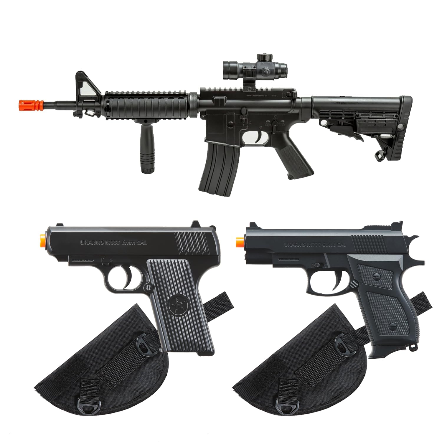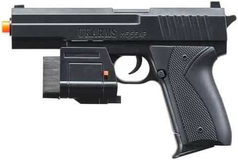 Goldenball M555 Spring-Powered Airsoft Pistol with Laser and Flashlight (Black) - Shooting at 180 FPS