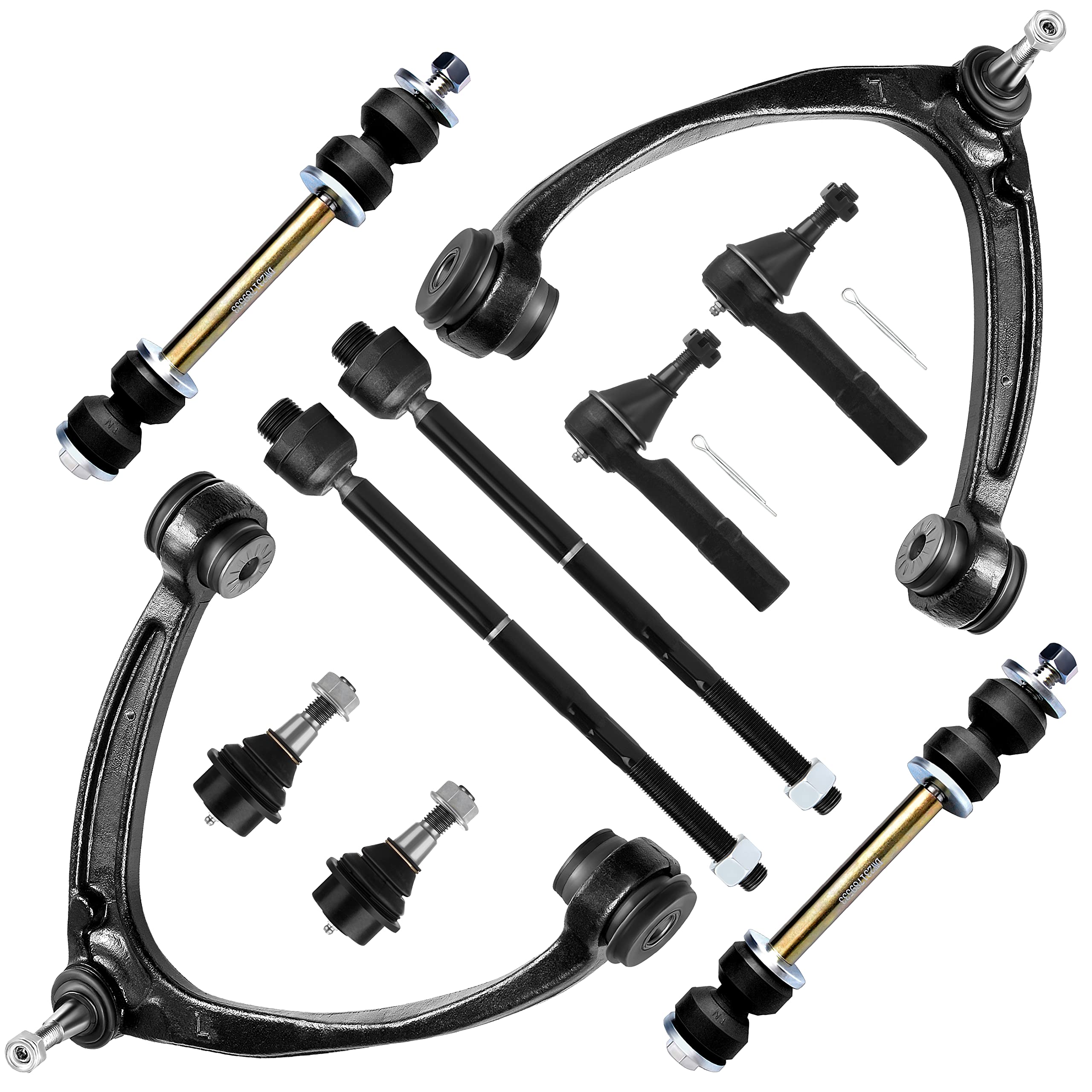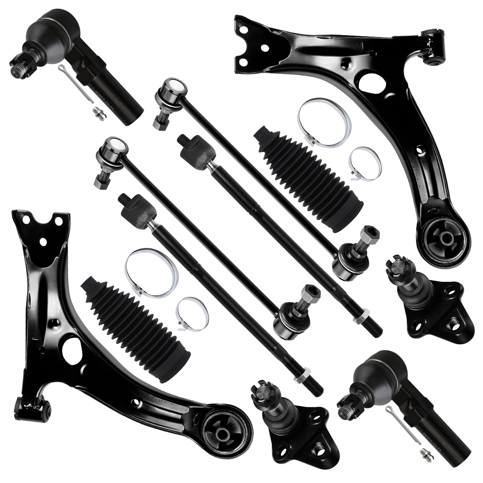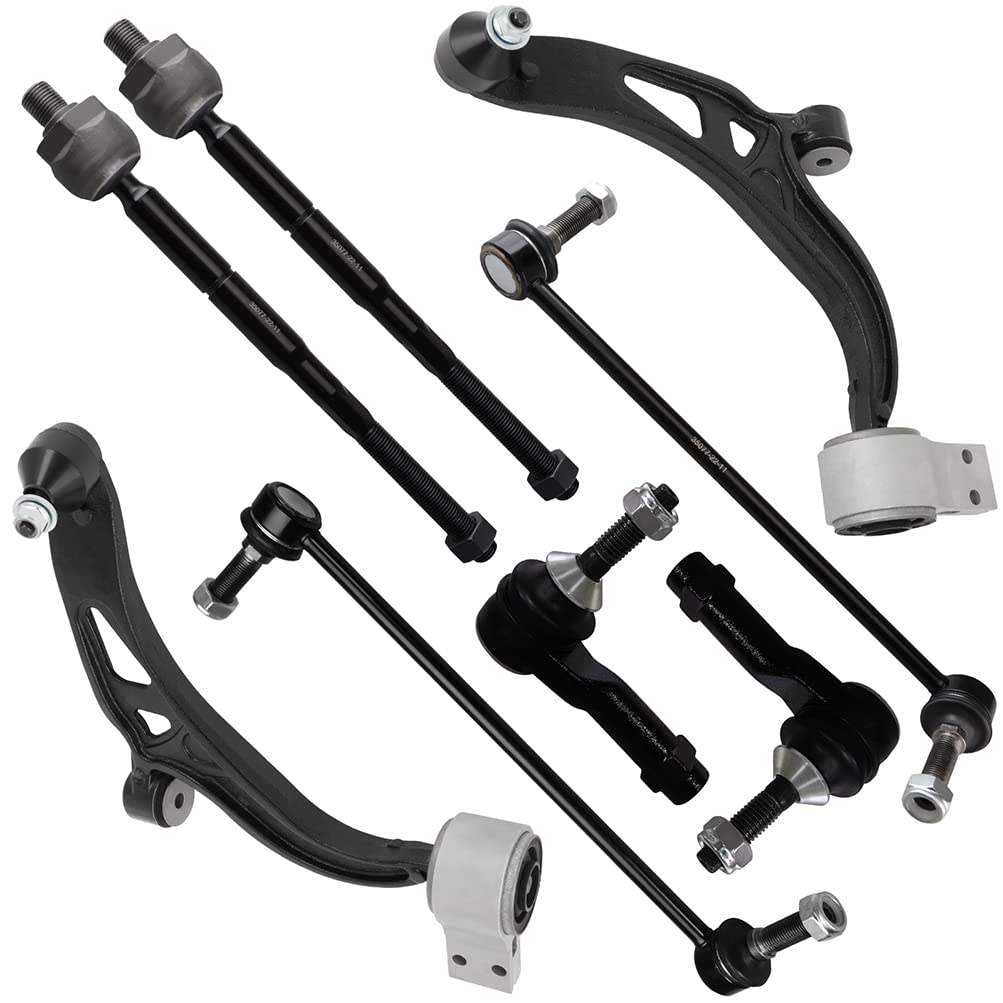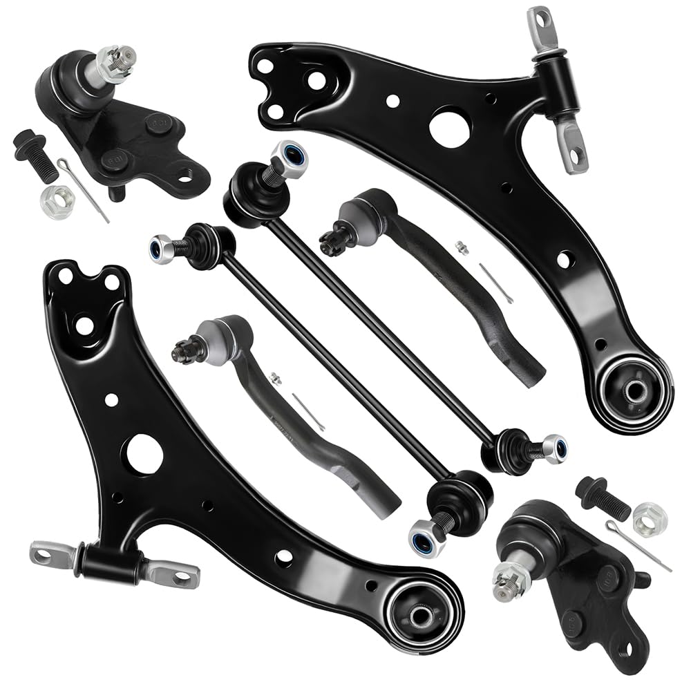 - 【KIT INCLUDED】 - 1 x Front Lower Control Arm And Ball Joint - Passenger Side, 1 x Front Lower Control Arm And Ball Joint - Driver Side, 2 x Front Inner Tie Rod End - 16mm Course Threads, 2 x Front Outer Tie Rod End, 2 x Front Sway Bar End Link, 2 x Front Steering Rack Boot