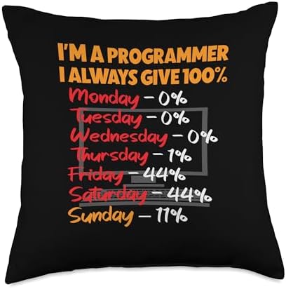 Funny Programmer Give Always 100% Coding Gift Funny Programmer Give Always 100% | Programming Coding Throw Pillow, 18x18, Multicolor