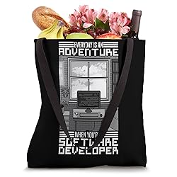 The Software Developer design is for computer science professional or software developer who loves using AI and IT tools. You love working as a computer scientist and software developer? Then you'll love this too! Everyday Is An Adventure When You're A Software Developer 16” x 16” bag with two 14” long and 1” wide black cotton webbing strap handles. Made of a lightweight, spun polyester canvas-like fabric. All seams and stress points are double-stitched for durability, and the reinforced bottom flattens to fit more items and hold larger objects. Spot clean/dry clean only.