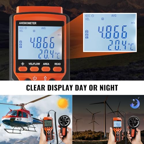 - 24/7 Clarity You Deserve: Say goodbye to guesswork, day or night. Our anemometer boasts a distinctive LED backlight screen that ensures effortless readings in any lighting conditions. Choose the wind speed with six different units – m/s, km/h, ft/min, mph, knots, and supports bft. MAX/MIN/AVG/CU wind speed display. Tailor your measurements to your liking and stay in control.