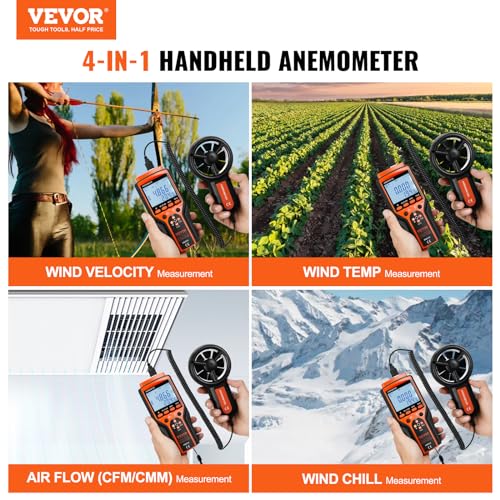 VEVOR Split Handheld Anemometer, 14-140, Digital Wind Speed CFM Meter Gauge with LED Backlight Screen, Measures Wind Velocity Temperature Air Flow, for Sailing Surfing Flying HVAC