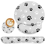 Britimes Ergonomic Mouse Pad Set with Wrist Rest Gray Paw Print Non-Slip Rubber Base Wrist Cushion Support and Coasters Mousepad with Wrist Support for Computer Keyboard and Desk