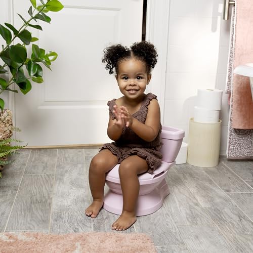 - Kids will feel a sense of accomplishment by pushing this toddler potty’s realistic-sounding handle to “flush” when finished, ensuring a confident transition to the real thing