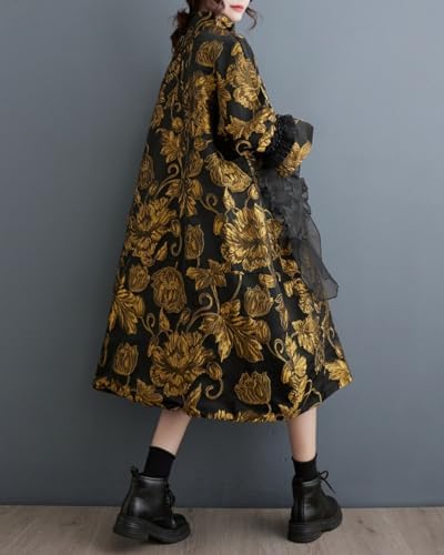 ellazhu Women's Printed Patchwork Mock Neck Flared Cuffs Dress GZ94 A