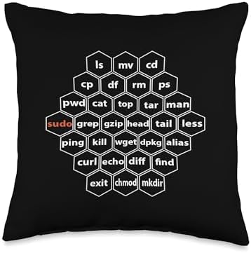 Cyber Club Tees Cyber Security-Linux Basic CLI Commands Throw Pillow, 16x16, Multicolor