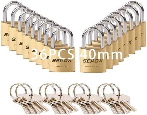SEPOX® 36 Pcs Pack Solid Brass Padlock with Same Keys 48 Pcs, Heavy Duty & Compact Waterproof Body 40mm 1-9/16",Small Lock & Key with Big Handle, Keyed Alike for School Gym Locker, Hasp, Tool Box