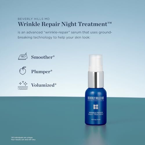 Beverly Hills MD Wrinkle Repair Night Treatment- Correcting Facial Serum for Sensitive Skin, Smoothing & Plumping Formula- Visibly Reduce & Combat Signs of Aging w/Hyaluronic Acid, Ginseng, Algae