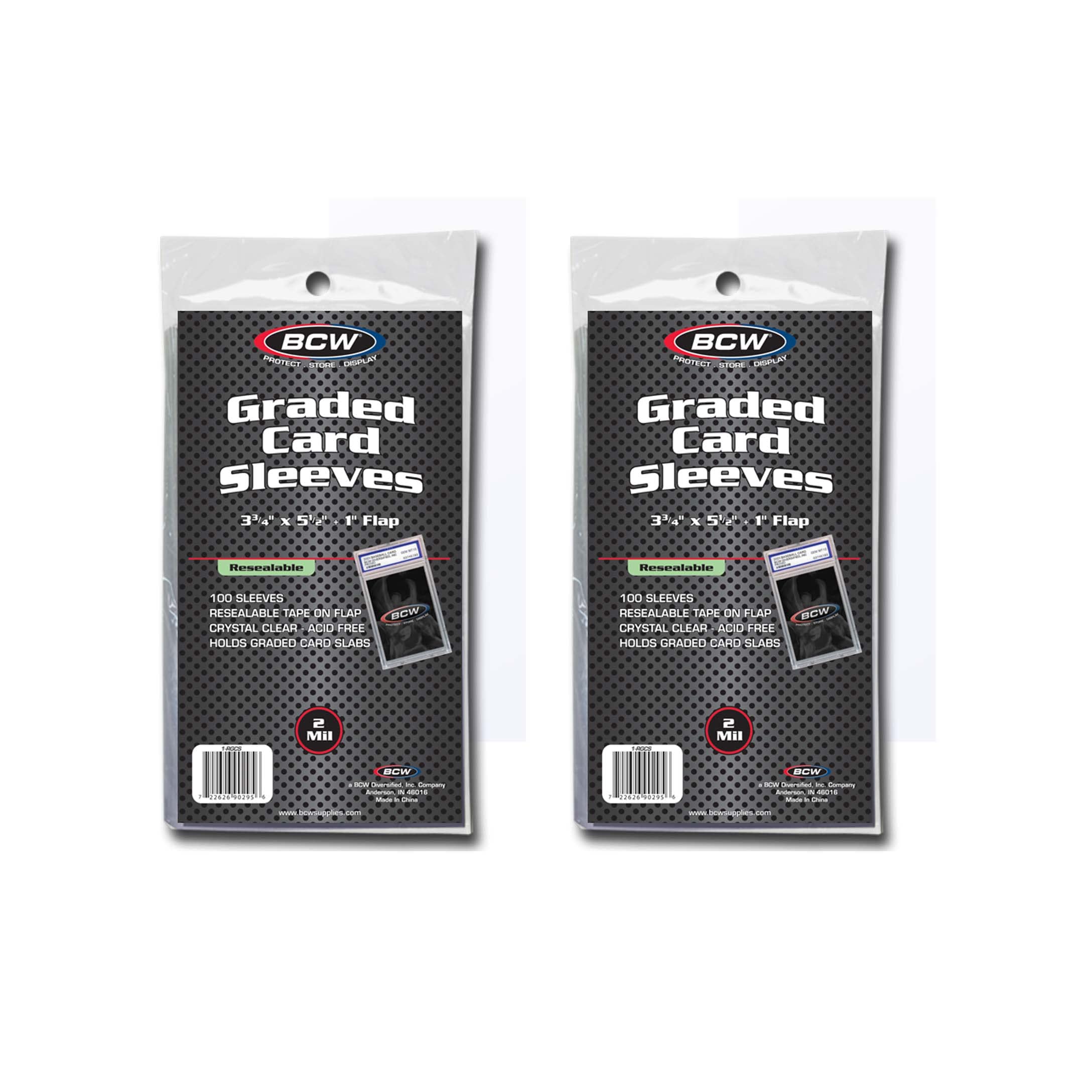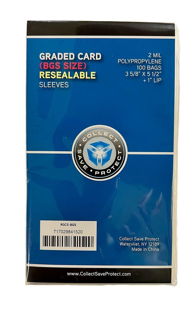 - Professional BGS slab Protectors. The BGS graded card sleeves measures 3.6 in by 5.3 in + 1.5 in resealable flap.
