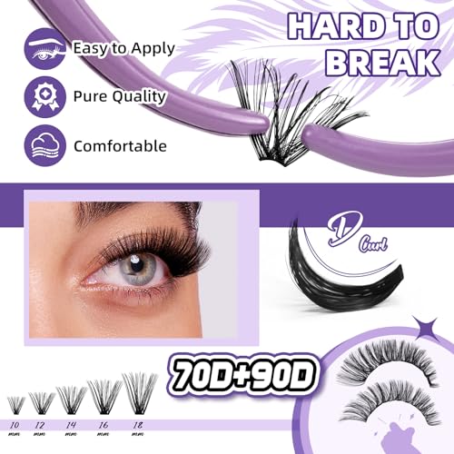 B&Q Fluffy Lash Clusters Kit 280PCS UltraSoft Cluster Eyelash Extensions, 70+90D Volume Eyelash clusters 10-18mm Lash Extension Kit, D Curl Individual Lashes kit with lash Applicator Tool (70+90D Set)
