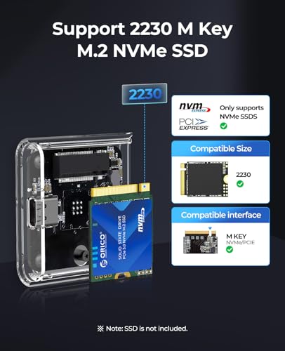 - 2230 SSD Enclosure - This m.2 enclosure is designed for the 2230 nvme ssd, The overall case is made of transparent PC material, showing a high-tech and high-value appearance. Note: Other sizes are not compatible