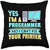 PeeKay Apparel - Programmer Can't Fix Your Printer Funny Programmer's Humor Throw Pillow, 18x18, Multicolor