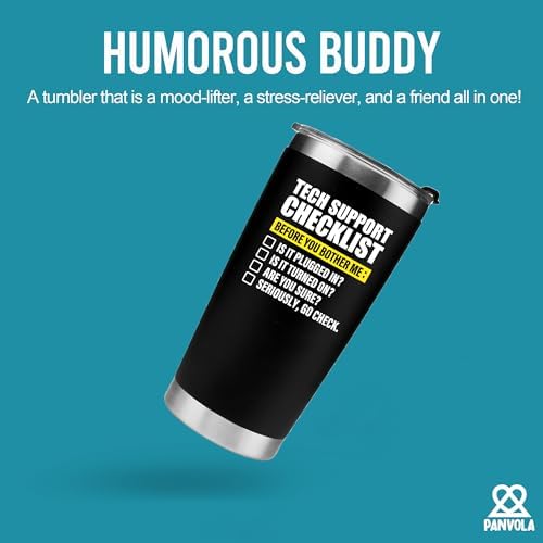 Panvola Tech Support Checklist Technical Support Gifts Computer Programmer IT Tech Support Engineer Support Specialist Vacuum Insulated Tumbler Stainless Steel Travel Mug (20 oz)