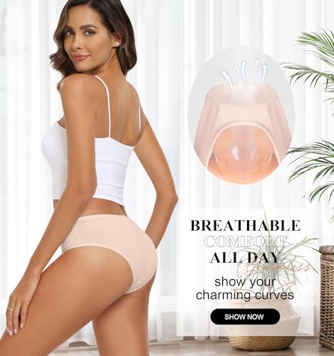 coskefy Womens Underwear Cotton Hipster Panties Soft Stretch Ladies Cheeky Bikini Briefs 4 Pack