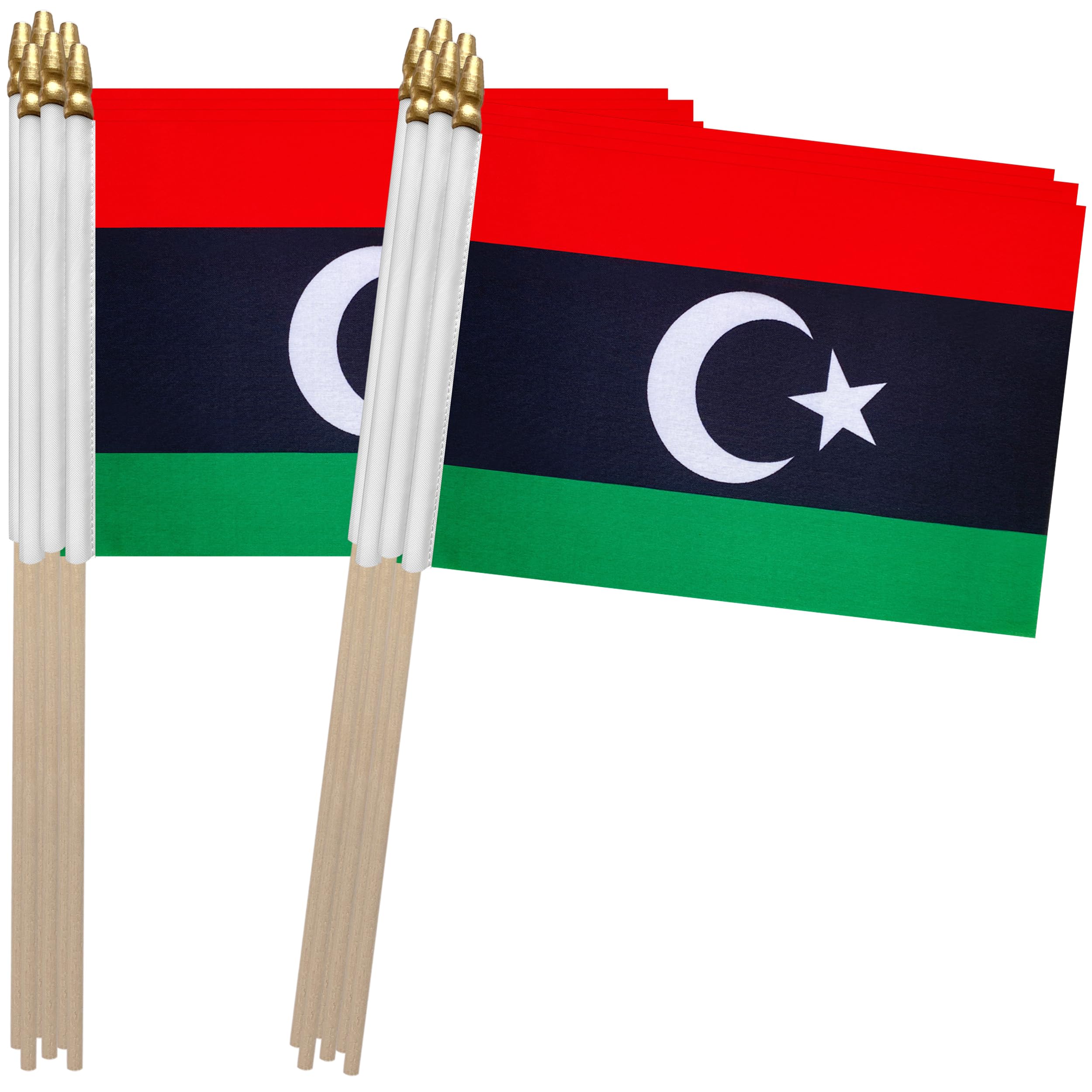 - QUANTITY - 5.5x8.2 Inch Libya stick flags, 12.6 inch wood stick,pack of 12.