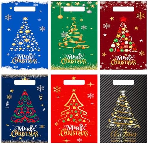 - Ideal Size: Christmas plastic bags measure approx. 6.5 x 9.7 inches, suitable for holding candies, cookies, chocolates, small toys, desserts and other things, you can also use them to pack gifts; Please check the size before ordering