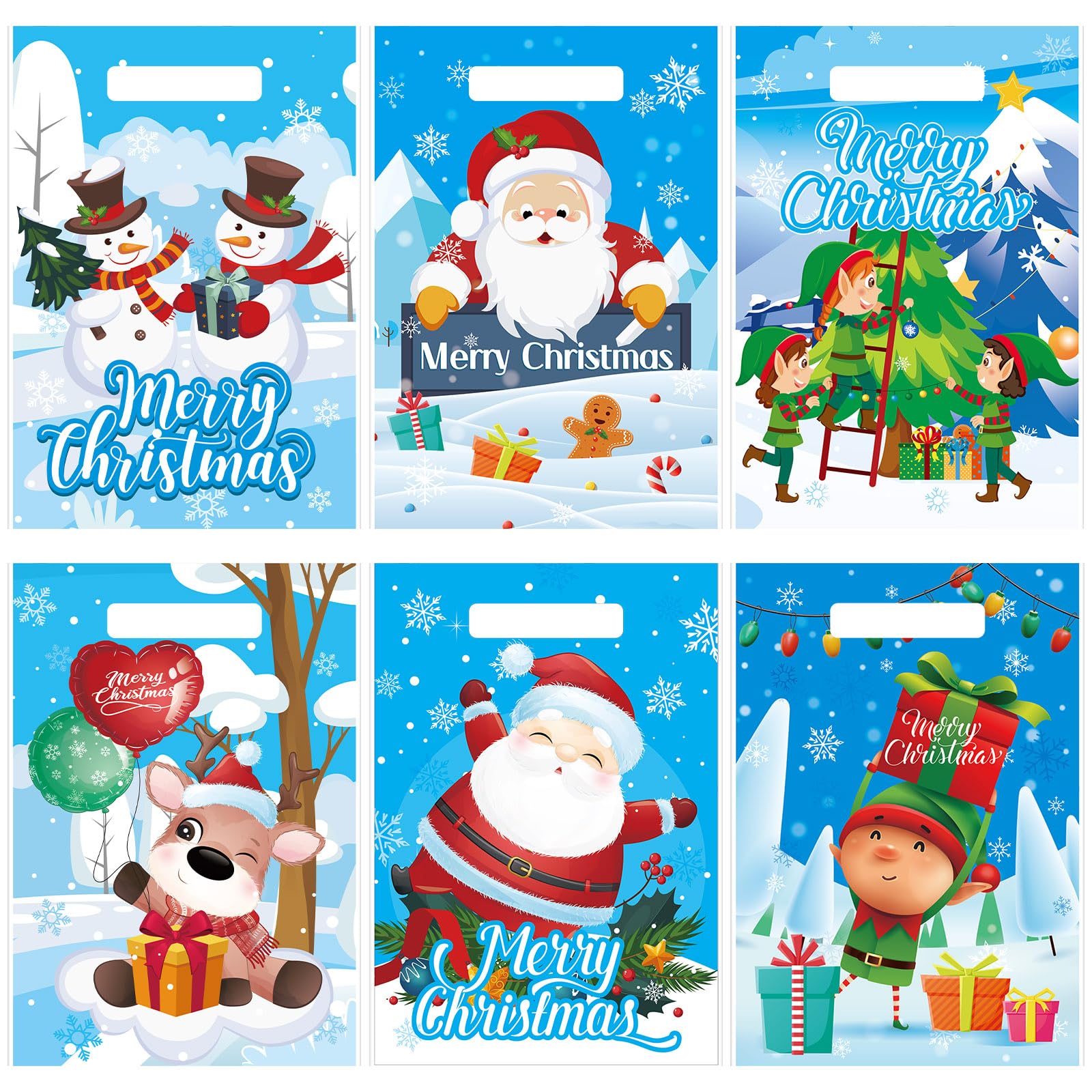 - Reliable and Sturdy: made of plastic material, these Xmas goodie bags are serviceable, strong and reliable, safe without bad smell, colorfast and not easy to fade or tear; Besides, the upper parts of bags have handles, which makes them convenient to carry