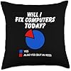Funny Sysadmin Hardware Software Engineer Apparel Will I fix Computers Today Yes Pie Chart for Tech Support Throw Pillow, 18x18, Multicolor