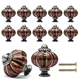 Cionyce 12 Pack Brown Pumpkin Knobs Ceramic Cabinet Knobs Retro Dresser Vintage Drawer Knobs Pulls for Vanity, Closet