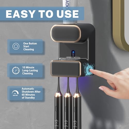 Automatic Electric Toothpaste Dispenser - Wall Mounted with 3 Toothbrush Slots for Kids and Adults (Black)