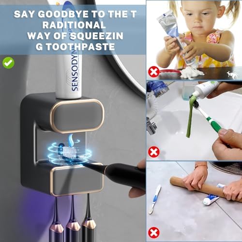 - 【Smart Electric Toothpaste Dispenser】 This electric toothpaste dispenser adopts the upgraded intelligent thermal sensing technology, which does not need to be pressed manually. Just put the toothbrush in the designated sensing area, and the toothpaste squeezer can automatically squeeze out toothpaste without contact, making the toothbrush more sanitary, caring for your family's health and making your life smarter.