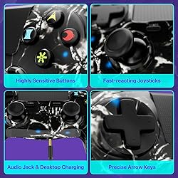 【Wide Compatibility】 The ISHAKO wireless controller compatible with PS4, PS4 Slim, and PS4 Pro, and supports wireless connectivity for Windows PCs and laptops. Note: The first connection to a PS4 console requires the included USB cable for pairing. 【Responsive & Durable Controls】 Experience precise gameplay with highly sensitive buttons and fast-reacting joysticks. The multi-touch touchpad enhances in-game control, while the 3.5mm audio jack and desktop charging port add extra convenience. 【Immersive Gaming Experience】 Featuring dual vibration motors and a 6-axis motion sensing system, this controller provides realistic feedback based on in-game actions, making every movement feel more immersive. 【Long Battery Life & Ergonomic Design】 Equipped with an 800mAh rechargeable battery, offering up to 8 hours of gameplay on a 2-hour charge. The anti-slip design grip ensures maximum comfort and prevents slipping, even during long gaming sessions. 【Complete Package for Gamers】 Package includes 1x wireless controller, 2x joystick caps, 1x charging cable, and 1x user manual. The stylish black skull design and gift-ready packaging make it a upgrade level present for gamers and families.