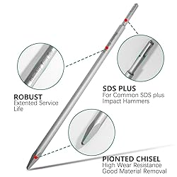 [1/2" SDS Plus shank]: Fits all brands of SDS PLUS Chipping and Demolition Hammers.It can be used with different brands, providing greater flexibility and convenience to suit different work requirements. [16-inch extended handle]: Long handle design, enhances work efficiency, reduce labor intensity. [40cr material]: Wear resistant tip ,hardened and with additional surface protection for increased longevity and removal rate. [Application]: Suitable for home Home demolition work or any scene demolition, it can remove cement, tile and so on.Reduced sticking in concrete or masonry The pointed tip of the chisel allows for precise and targeted force application, easy to openings in tough materials.