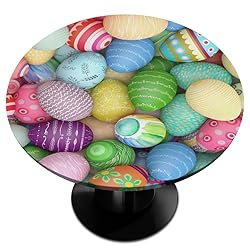 Pardick Colorful Eggs Round Fitted Tablecloth with Easter Easter Round Table Cover Waterproof Wipeable Polyester Circle Table Cloths for Kitchen Party Patio Holiday Decor Fit for 45"-50" Tables