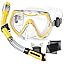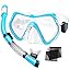 - Comfortable, Leak-Proof Fit for All Face Shapes: This adjustable snorkel kit features a soft, food-grade silicone skirt that creates a leak-proof seal on various face shapes. The scuba mask ratcheting strap ensures a secure, comfortable fit.Built-in nose cover helps beginners breathe more naturally and avoid nose flooding while underwater.