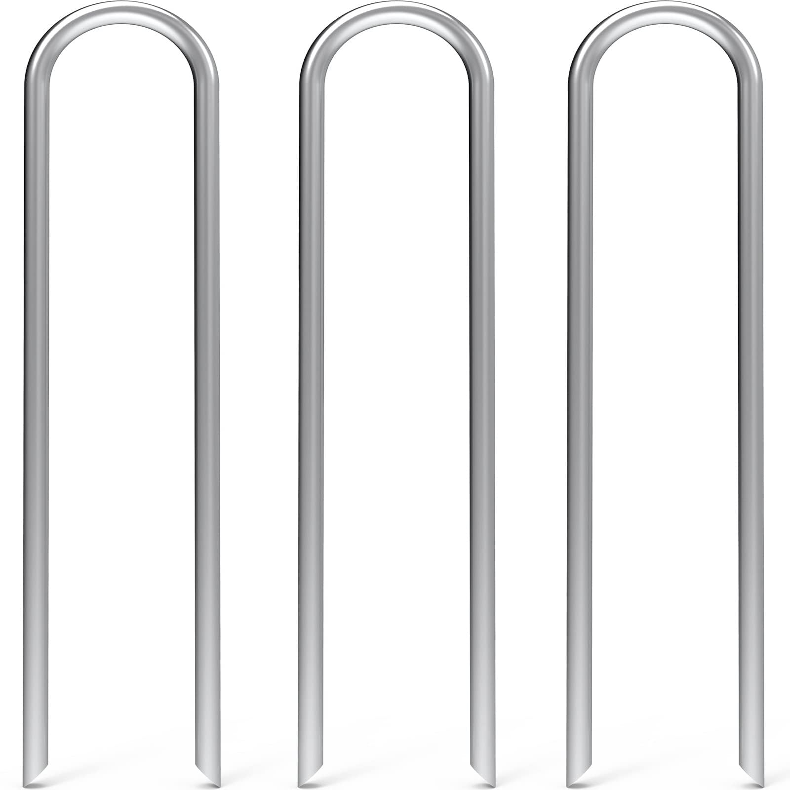 - 【Excellent Material】: Garden stake pins are made of high-quality galvanized iron, lightweight, durable, rust-proof, wear-resistant and not easy to bend, it can be reused many times. U-shaped design of landscape staples 6 inch, it can save you valuable time and frustration.