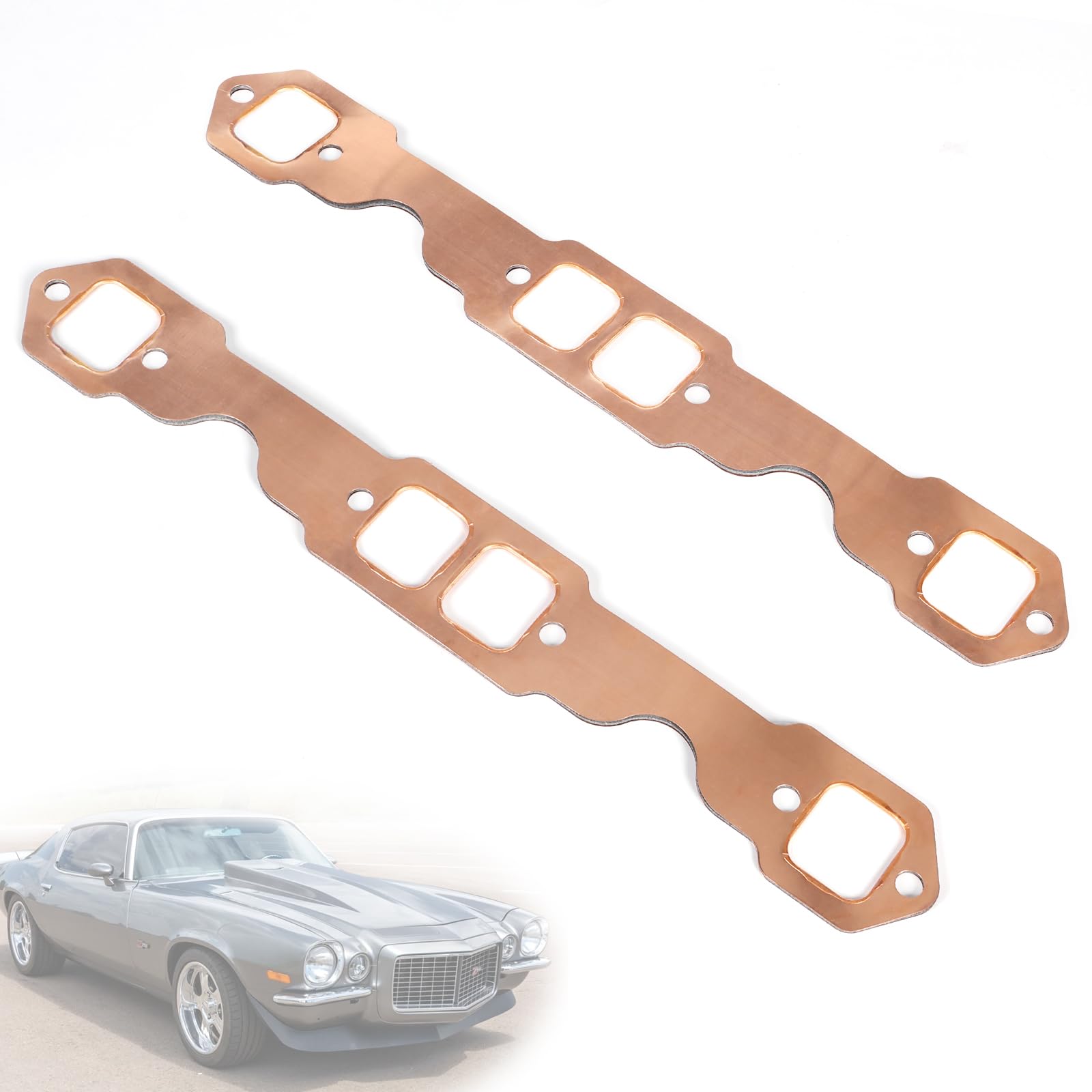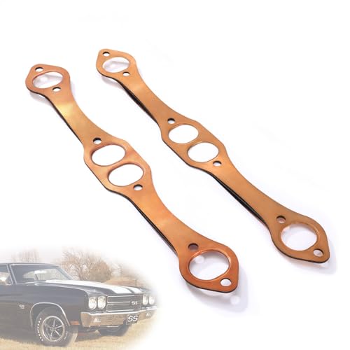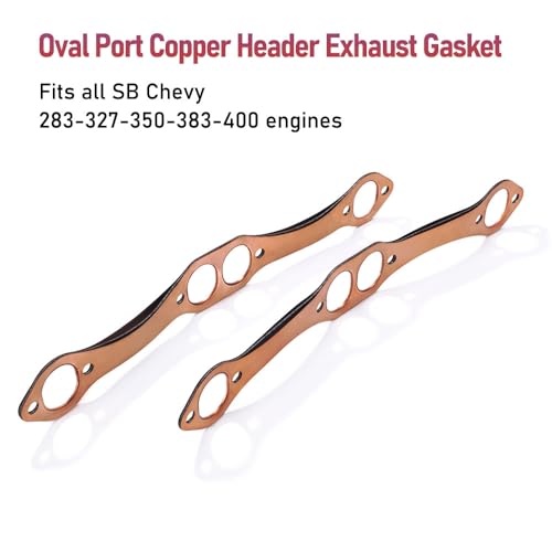 Creative.C SBC Header Gaskets, Oval Port Copper Exhaust Manifold Gaskets Compatible with Chevy 262 283 305 327 350 383 400 Small Block, Reusable