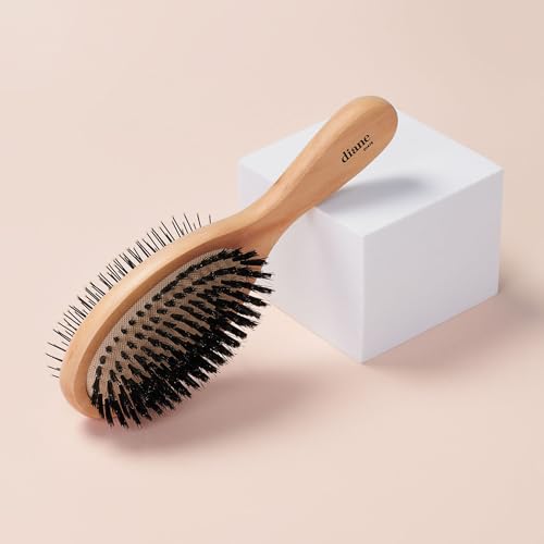 Diane 2-in-1 Premium Double-Sided Hair Brush, Detangling and Smoothing Hair Brush with Flexible Pins and Nylon-Reinforced Boar Bristles for Wet or Dry Hair, Ideal for Fine to Medium Hair Types