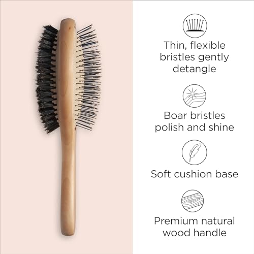 - 2-in-1 Detangling and Styling: Designed with flexible pins on one side for gentle detangling and nylon-reinforced boar bristles on the other to smooth and polish, this double sided brush offers the best of both worlds