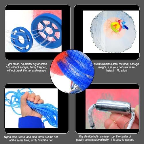 - Excellent Sinking Rate: Our fishing nets are specifically designed to sink quickly with one pound of galvanized weight per foot. It allows you to catch a variety of fish quickly and efficiently in both freshwater and saltwater environments, the 3FT comes with a 26-foot floating braided rope making it suitable for all types of water. The 6FT comes with 32 feet of floating braided rope making it suitable for all types of water.