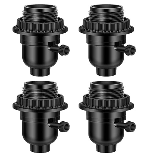 UL Listed E26 Light Socket, Threaded Lamp Socket Replacement with ON/Off Switch Medium Base Lamp Parts with Lamp Shade Ring Ring for Table lamp, Floor lamp, Light Fixture, Black 4-Pack