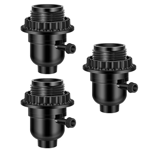 UL Listed E26 Light Socket, Threaded Lamp Socket Replacement with ON/Off Switch Medium Base Lamp Parts with Lamp Shade Ring Ring for Table lamp, Floor lamp, Light Fixture, Black 3-Pack