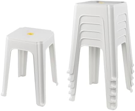 Generic Neadas 6 Packs Plastic Stacking Backless Stools, Square Stackable Plastic Stools, White
